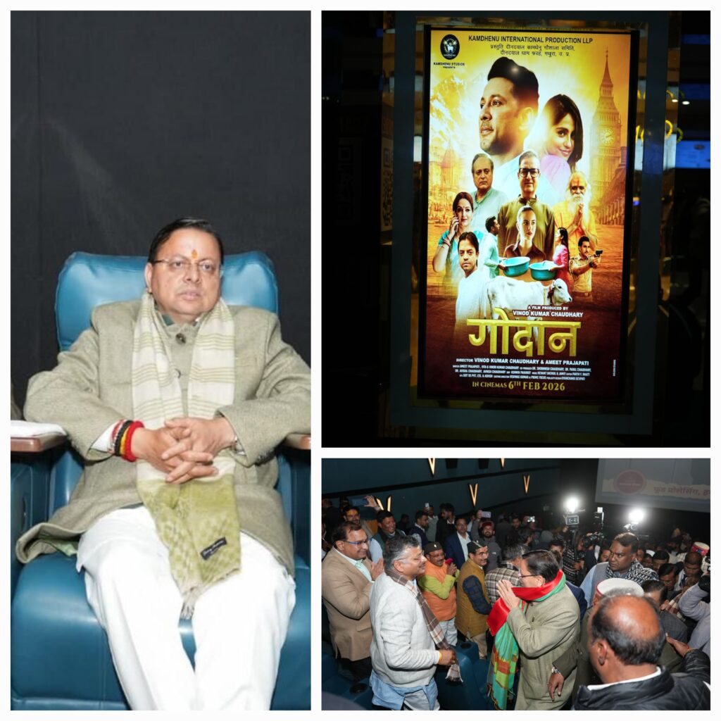 मुख्यमंत्री पुष्कर सिंह धामी ने आज देहरादून स्थित सेन्ट्रियो मॉल, हाथीबड़कला में गाय संरक्षण पर आधारित फिल्म ‘गौदान’ का अवलोकन किया। इस अवसर पर उन्होंने फिल्म की विषयवस्तु को भारतीय संस्कृति, ग्राम्य जीवन और गौ-संवर्धन की परंपरा से जुड़ा अत्यंत सार्थक एवं प्रेरणादायी प्रयास बताया।