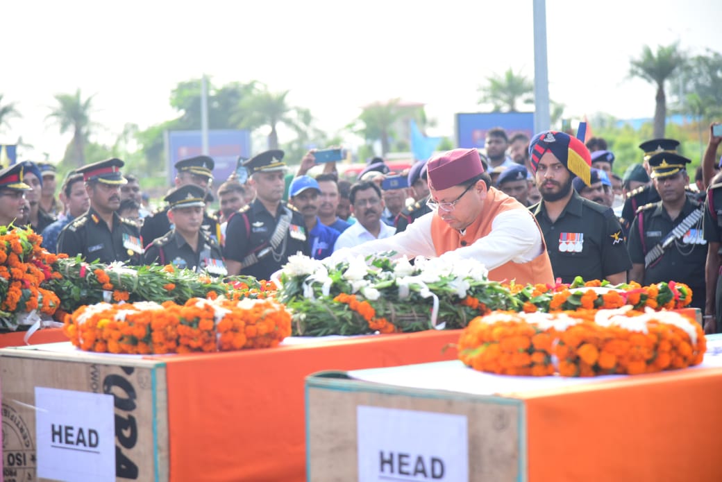 मुख्यमंत्री ने कहा कि यह हम सभी प्रदेशवासियों के लिए अत्यंत पीड़ा का क्षण है क्योंकि हमने भाई और बेटा भी खोया है। हमारे रणबाँकुरों ने उत्तराखण्ड की समृद्ध सैन्य परंपरा का पालन करते हुए माँ भारती के चरणों में अपना सर्वस्व न्योछावर कर दिया।
