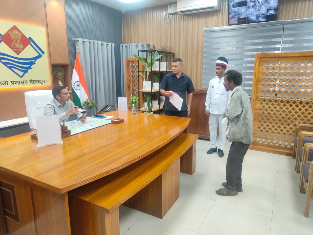 विगत दिवस कलेक्टेट परिसर में असहाय राजू पंहुचा जिसका एक हाथ बुरी तरह से जला हुआ था। राजू ने जिलाधिकारी को अपनी पीड़ा सुनाते हुए बताया कि वह होटल में मजदूरी कराता है तथा चमोली में उसका गर्म पानी से जल गया, दून अस्पताल ने हायर सेंटर को रेफर कर दिया है, उसके पास उपचार के लिए पैसे नही है। जिस पर जिलाधिकारी संविन बसंल ने बर्न स्पेशलिस्ट निजी चिकित्सालय से दूरभाष पर वार्ता करते हुए राजू के उपचार का अनुरोध किया जिस हेल्पिंग हेंड हॉस्पिटल के डॉ कुश ने राजू को तत्काल हास्पिटल भेजने को कहा। जिला प्रशासन ने सारथी वाहन से राजू को चिकित्सालय में भर्ती कराया।