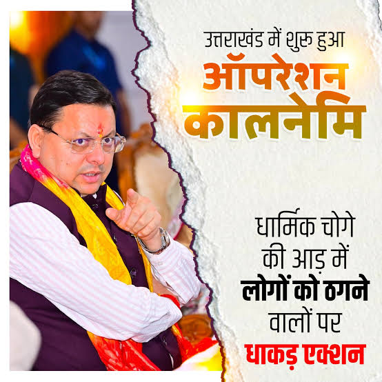 इसी नीति के तहत राज्य सरकार द्वारा धर्म और आस्था की आड़ में पाखंड, ठगी, अवैध गतिविधियों और संदिग्ध तत्वों के विरुद्ध “ऑपरेशन कालनेमि” को 10 जुलाई से प्रदेशभर में प्रभावी रूप से लागू किया गया। इस अभियान का उद्देश्य देवभूमि की पवित्रता को बनाए रखते हुए कानून-व्यवस्था को सुदृढ़ करना और जनता के विश्वास की रक्षा करना है।
