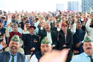 मुख्यमंत्री ने उपस्थित पूर्व सैनिकों पर पुष्प वर्षा कर राज्य निर्माण व राष्ट्र सेवा में उनके योगदान के लिये सभी का अभिनंदन किया। उन्होंने कहा कि उत्तराखंड का हर परिवार गर्व से कह सकता है कि उसके घर से कोई न कोई भारत माता की सेवा में समर्पित है। मुख्यमंत्री ने कहा कि देवभूमि उत्तराखंड वास्तव में वीर भूमि है, जहाँ की माटी में ही राष्ट्रभक्ति और बलिदान की भावना रची-बसी है।